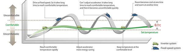 H νέα κατοχυρωμένη τεχνολογία οδήγησης, εξελιγμένη αποκλειστικά από τη GREE, αξιοποιεί ακόμα περισσότερο τις χαμηλές συχνότητες περιστροφής του συμπιεστή, τύπου DC Inverter, με αποτέλεσμα τη δυνατότητα λειτουργίας του ακόμα και με συχνότητα περιστροφής 1Hz (πολύ χαμηλή). Έτσι, ο συμπιεστής δεν σταματά ακόμα και μετά την επίτευξη της επιθυμητής θερμοκρασίας, μειώνοντας ακόμα περισσότερο τις ενεργοβόρες εκκινήσεις – στάσεις και εισάγοντας νέα δεδομένα στην άνεση και την αξιοπιστία.